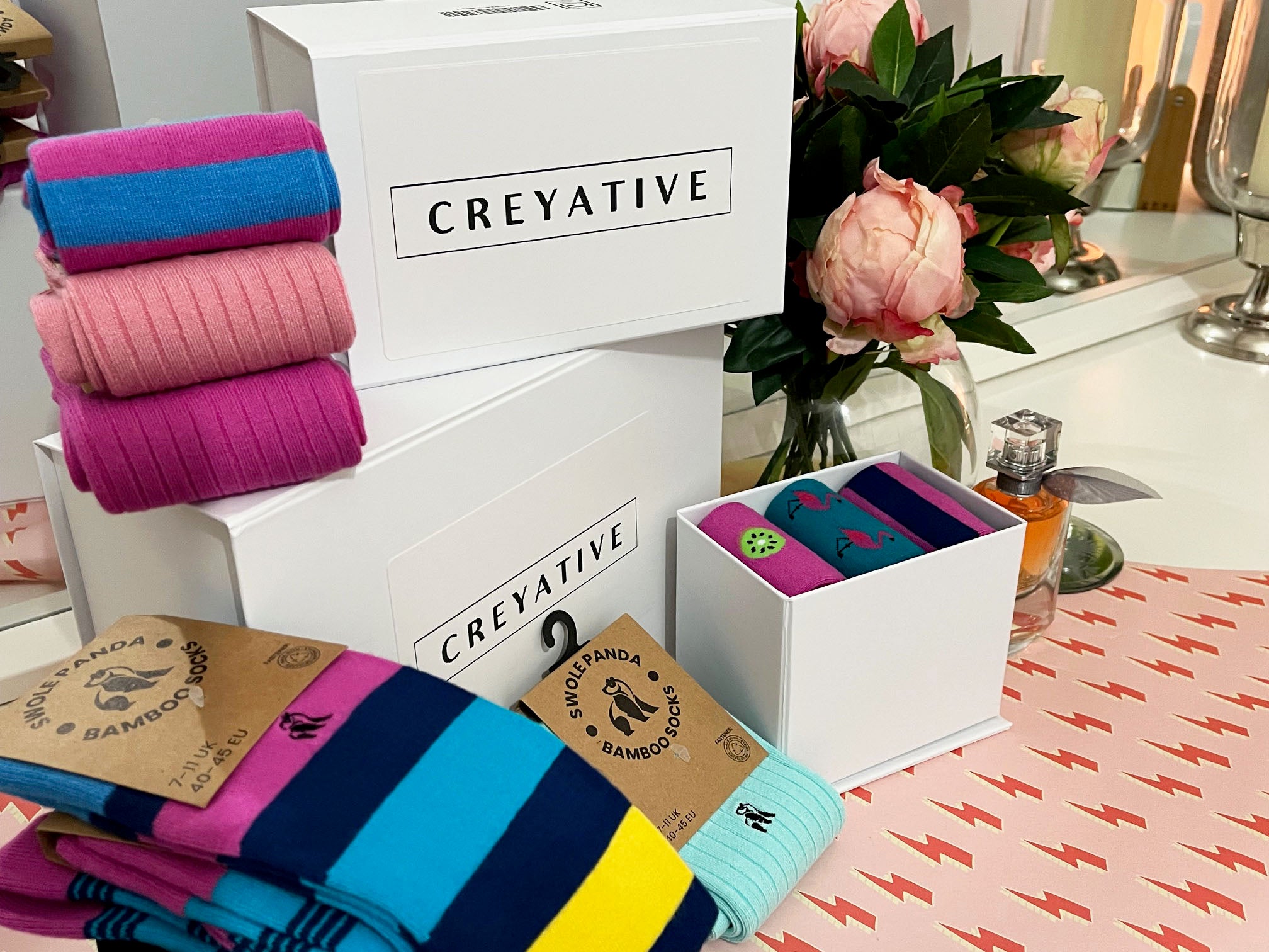 Fantastic service with fast delivery. Lovely soft, great quality socks with cool stripes. Definitely will order more from Creyative